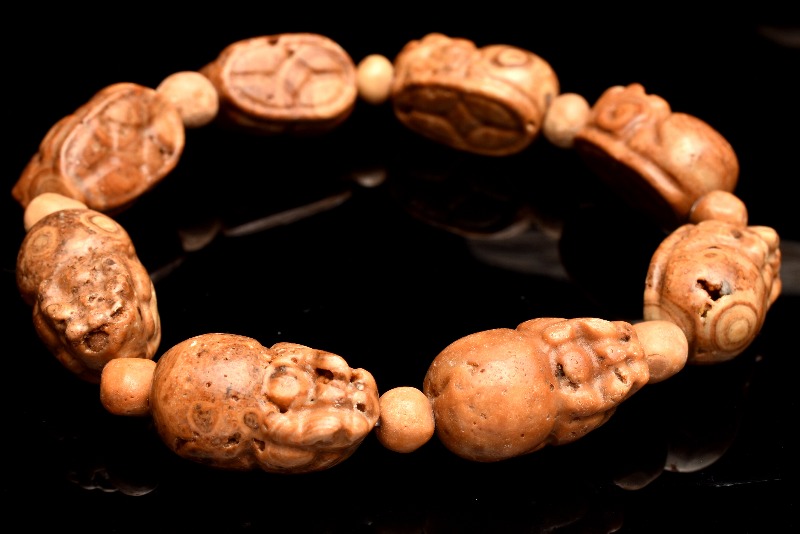 【1点物】身に着ける御神体 龍宮舎利石 20-22x12-12.5(丸玉6.5)mm 貔貅彫刻 ブレスレット _MA3059