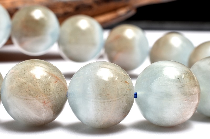 材質ヘマタイトインアクアマリン 13.5-14mm 産地:ブラジル