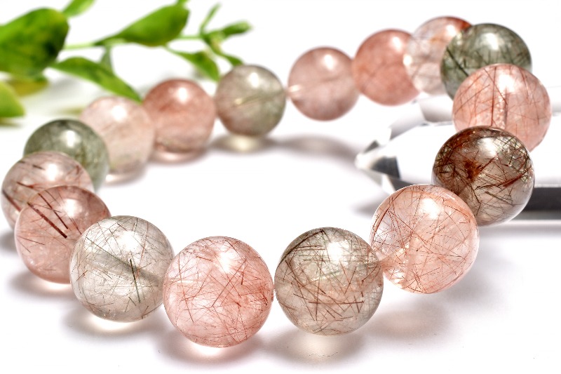 【1点物】レッド・シルバー MIXルチルクォーツ 12.5mm ブレスレット _MA3175