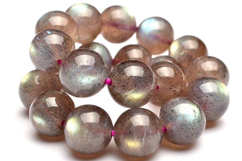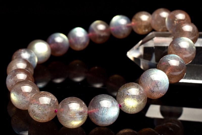 透明感があり、全珠にラブラドレッセンスを確認できる珠揃いで美しく光沢あふれるタイプです。