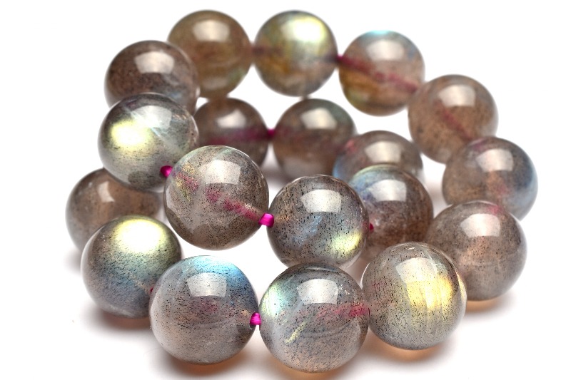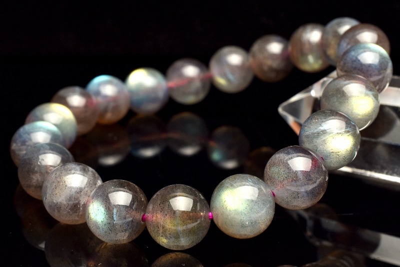 透明感があり、全珠にラブラドレッセンスを確認できる珠揃いで美しく光沢あふれるタイプです。