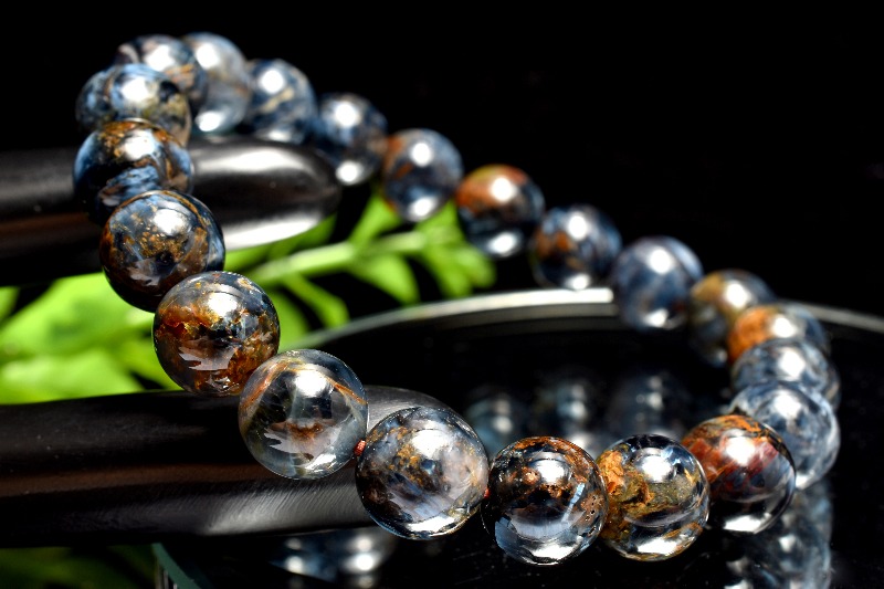 一般的にはタイガーアイ系の茶褐色が多いですが、ブルータイガーの青系もあり、茶と青の混じったものもあります。