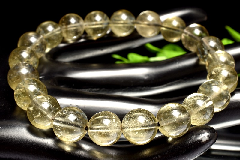 【1点物】希少高品質◇ブラックファントム入り リビアングラス 9.5mm ブレスレット _MA3334
