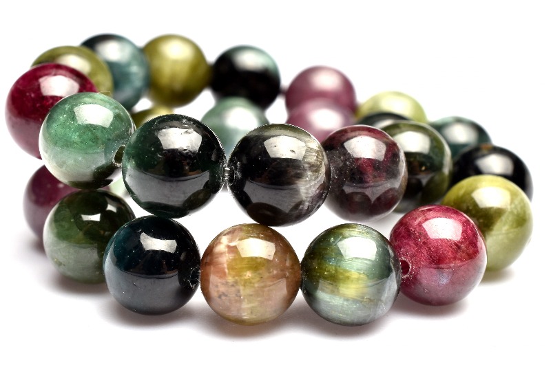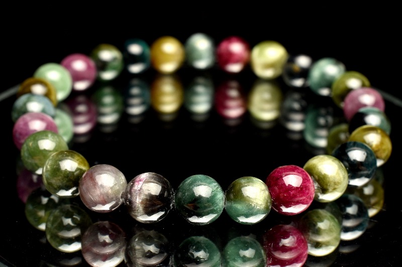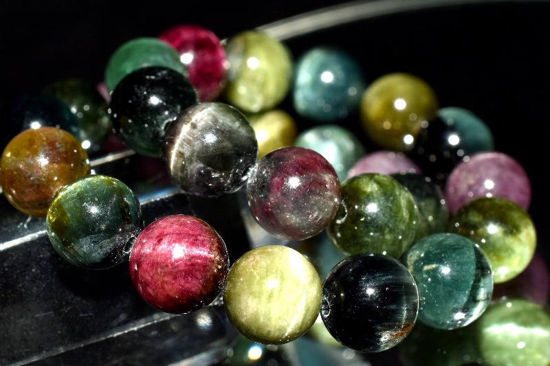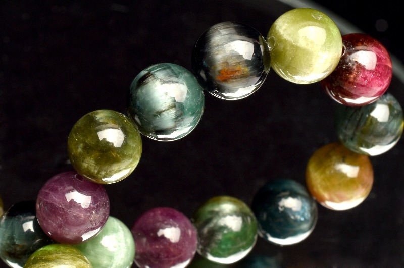 【1点物】AAA☆キャッツアイ効果 トルマリン 7mm ブレスレット _MA3379