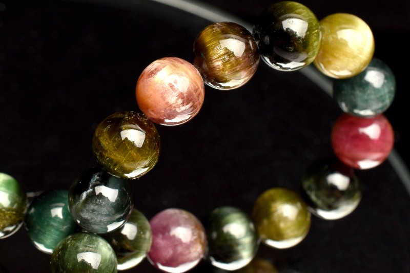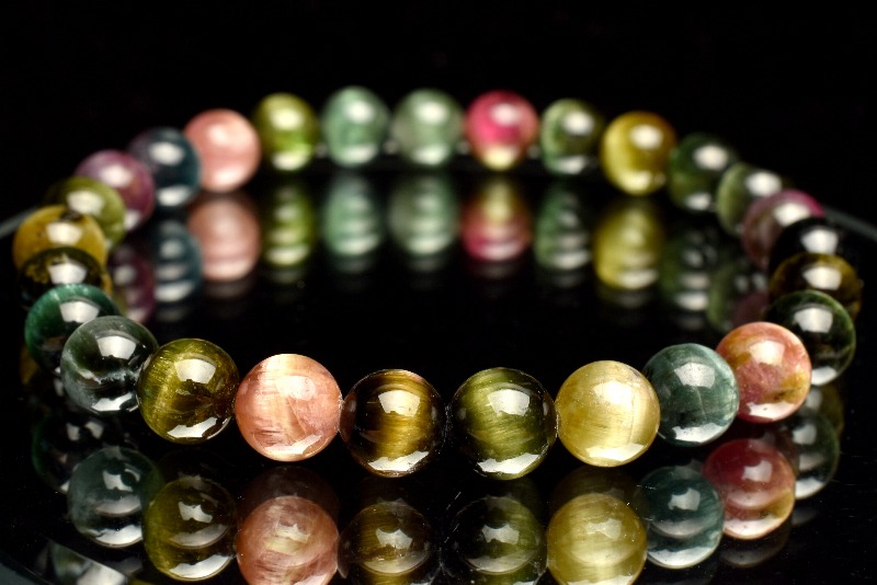 【1点物】AAA☆キャッツアイ効果 トルマリン 7mm ブレスレット _MA3380