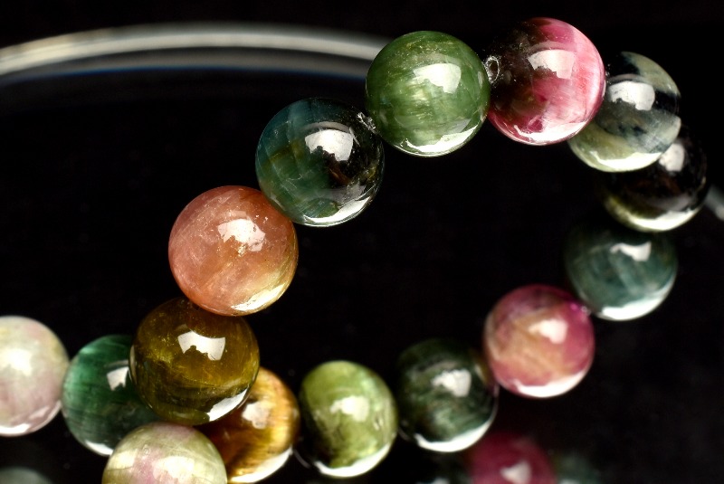 【1点物】AAA☆キャッツアイ効果 トルマリン 7.5mm ブレスレット _MA3381