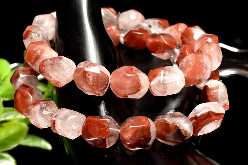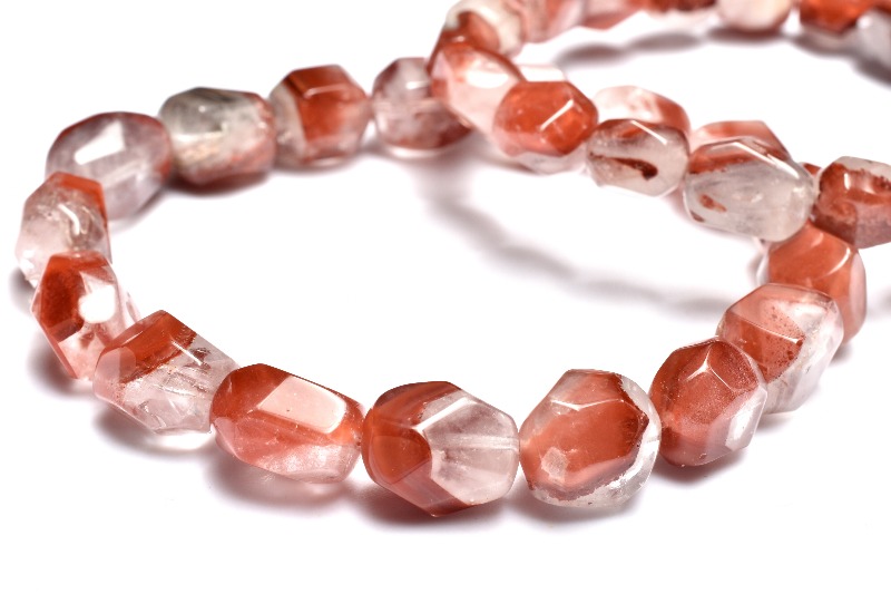 高発色 レッドピラミッドファントムクォーツ 9-13x9-10mm 原石ラフカット ブレスレット 1個売り _BG5732-2