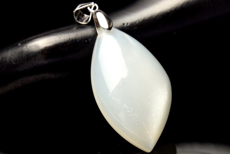 【1点物】Silver925◇ミルキーシラー ムーンストーン 32x18mm リーフ ペンダントトップ _PC3485