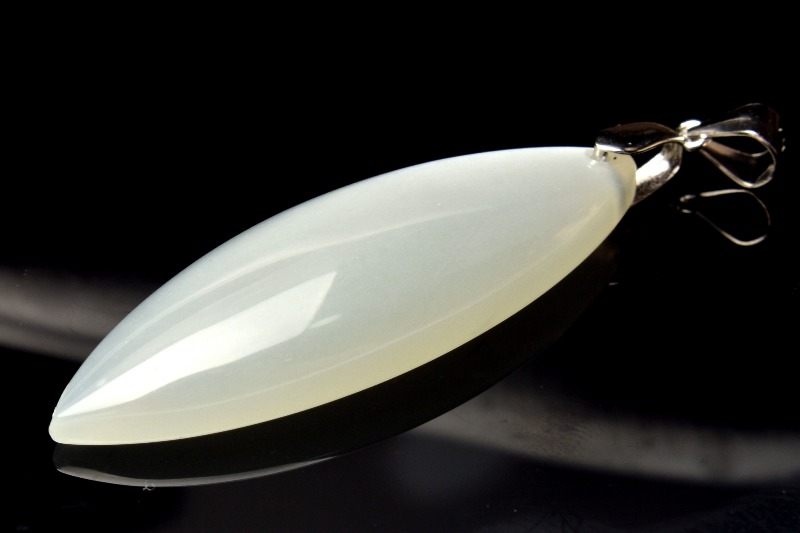 【1点物】Silver925◇ミルキーシラー ムーンストーン 41x14mm マーキス ペンダントトップ _PC3486