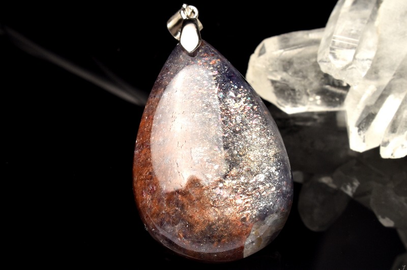【1点物】Silver925◇煌き内包 アイオライトサンストーン 32x22mm ドロップ ペンダントトップ _PC3570