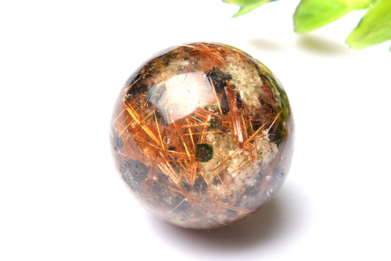 【1点物】レア ガーデンルチルクォーツ 21mm 丸玉(台座なし) スフィア _PC3639