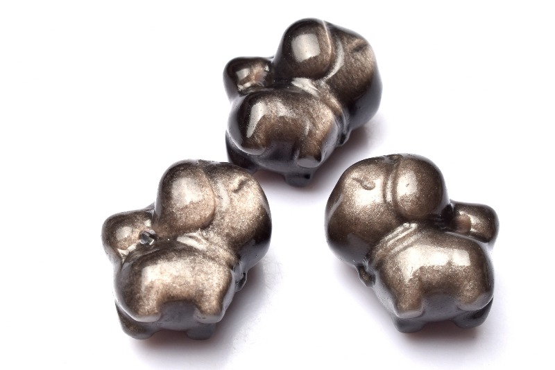 3個セット シルバーオブシディアン 19-19.5x14-14.5mm 犬 ワンちゃん彫刻(トップ穴) ルース _PRG2290