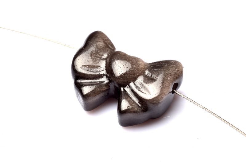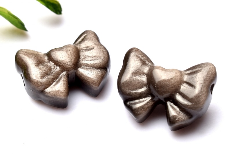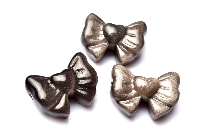 3個セット シルバーオブシディアン 12-12.5x17mm リボン彫刻(貫通穴) ビーズ _PRG2294