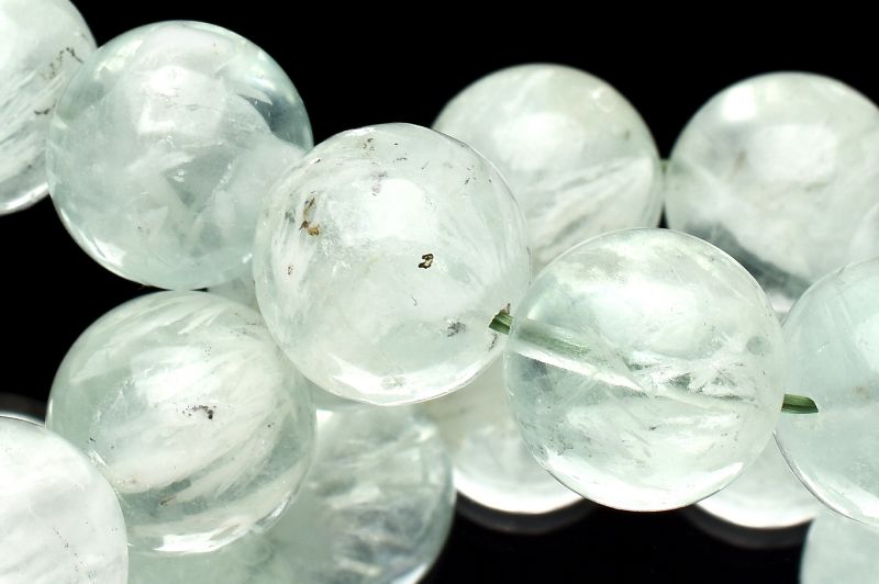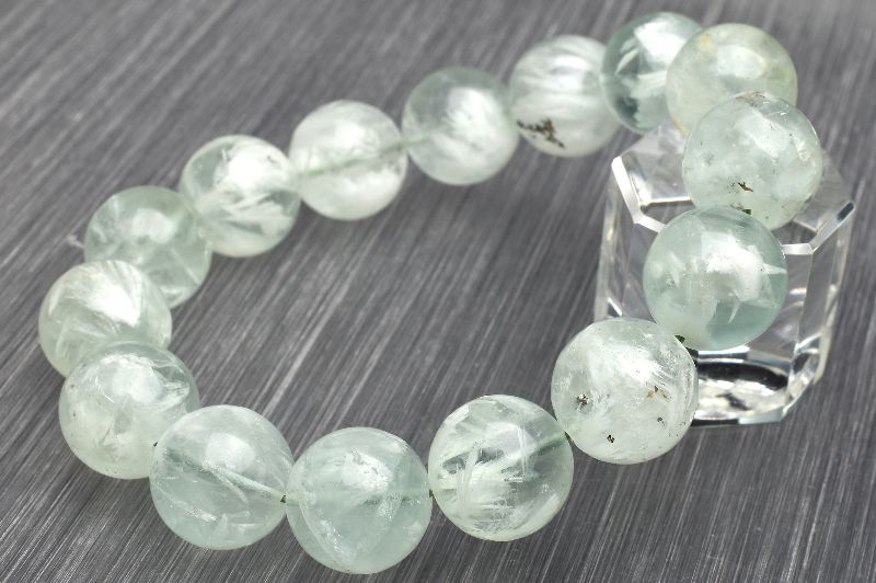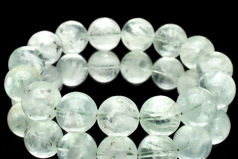 【1点物】幻想的◇白い羽根 フェザーインフローライト 14mm ブレスレット _U6302