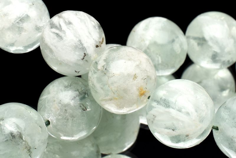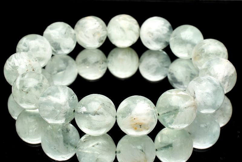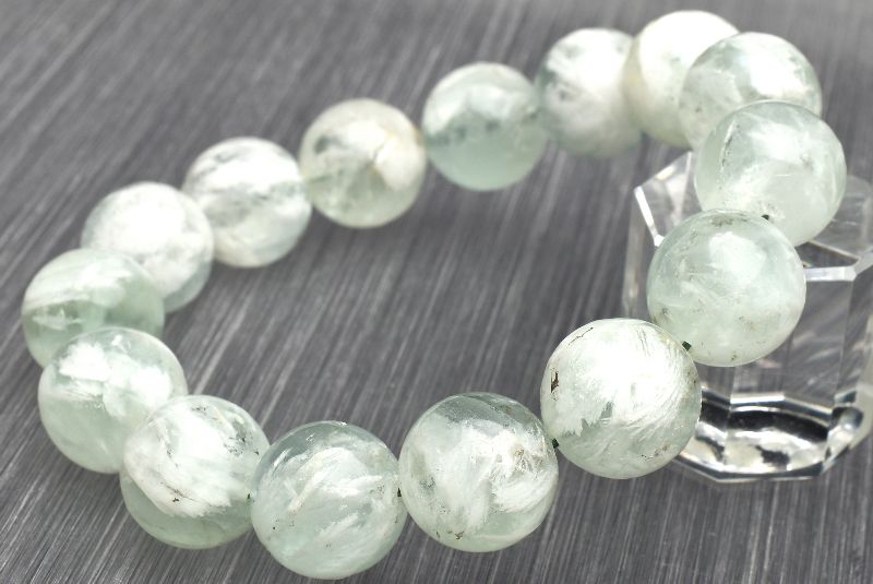 【1点物】幻想的◇白い羽根 フェザーインフローライト 14mm ブレスレット _U6303