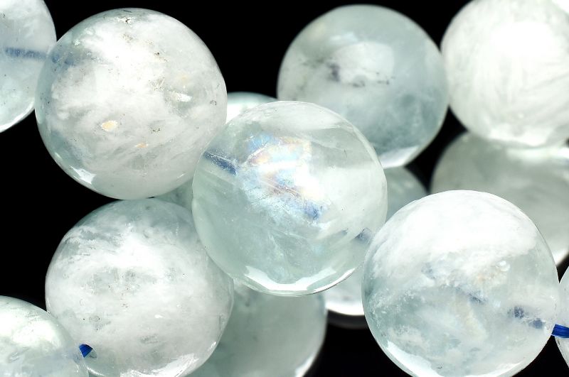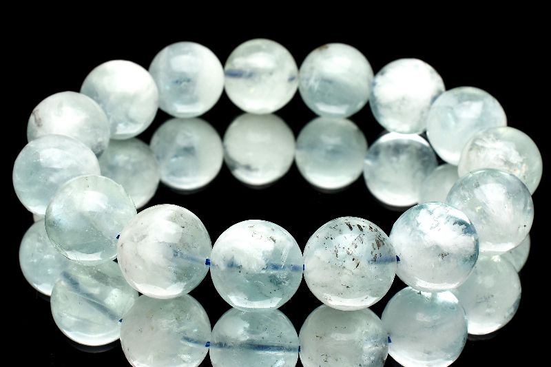 【1点物】幻想的◇白い羽根 フェザーインフローライト 14mm ブレスレット _U6309