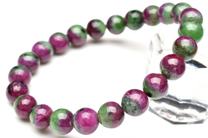 【1点物】美コントラスト ルビーインゾイサイト 8mm ブレスレット _U6313