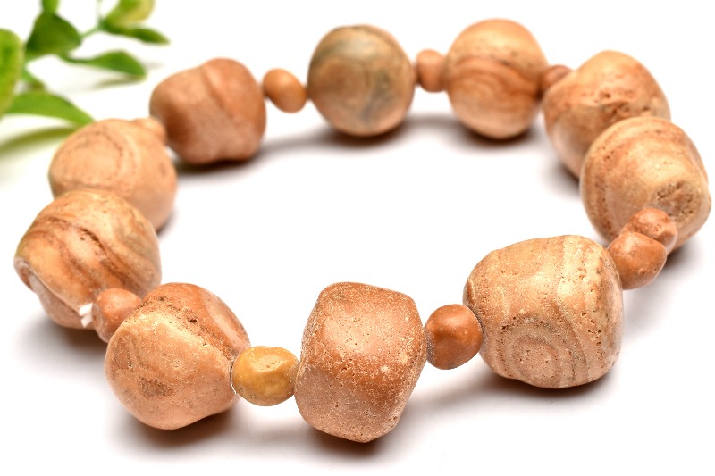 特徴・意味大地の神秘をそのままに──このブレスレットは、龍宮舎利石の原石を丁寧に加工して仕立て上げました。