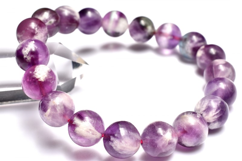 【1点物】幻想的◇白い羽根 フェザーインフローライト 10mm ブレスレット _MA3443