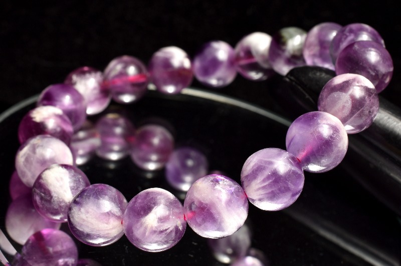 めっちゃ綺麗なパープルフローライトに可愛いらしい白い羽が入ってます!フローライトのブレスレットは扱いが大変って聞いてたので買うのは控えてたのですが、フローライト持ってる人達から意見を聞き普段使いなら問題ないとのこと!このフェザーinは欲しくて仕方なかったので買えて良かったですー!