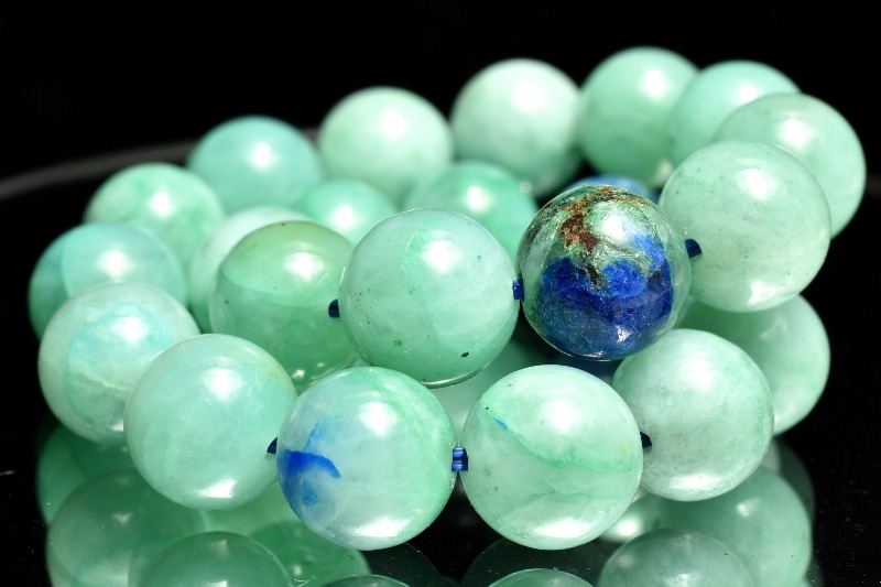 ブルーが本体の多くを占め、グリーンやブラウンなどのカラーが混ざり合って、出来ているため、丸く加工されたクリソコラは、宇宙から見た地球のような外観となっています。