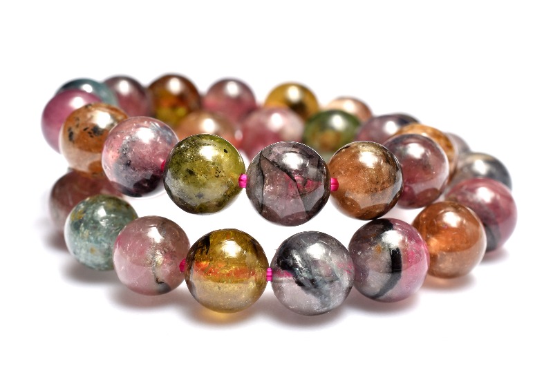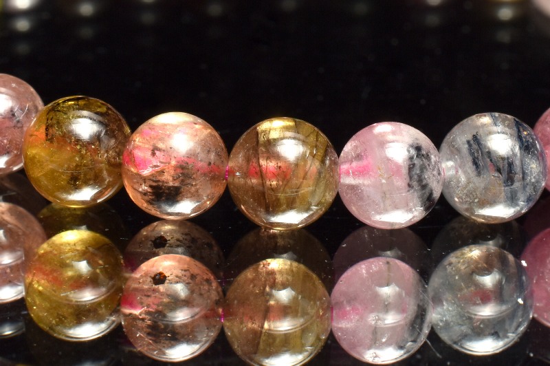 【1点物】透過性あり◇マルチカラー MIXトルマリン 6mm ブレスレット _MA3549