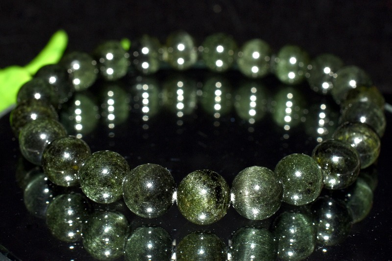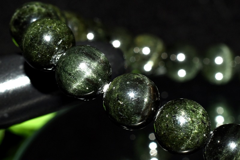 【1点物】希少AA☆十文字(4条)のスター効果! ブラックスターダイオプサイト 8.5mm ブレスレット _MA3554