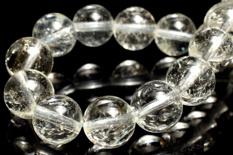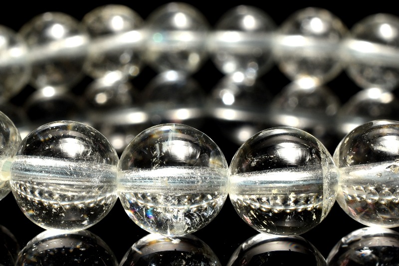 稀に虹入りの珠や、白雲母(モスコバイト)やトルマリンなどの内包物も見られます。