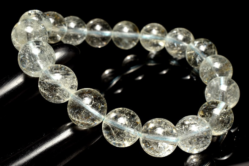 稀に虹入りの珠や、白雲母(モスコバイト)やトルマリンなどの内包物も見られます。
