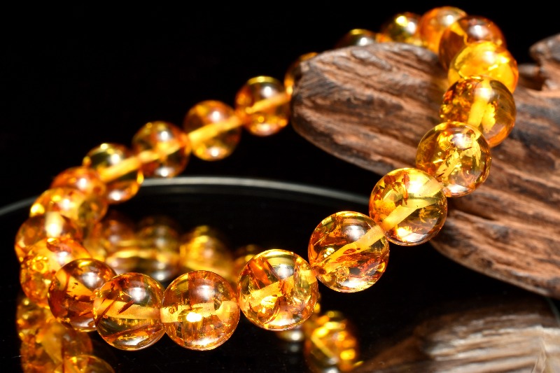 【1点物】バルト海産◇天然琥珀 バルティックアンバー 9mm ブレスレット _MA3734
