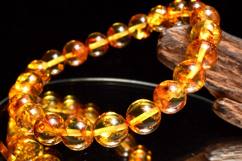 【1点物】バルト海産◇天然琥珀 バルティックアンバー 9mm ブレスレット _MA3735