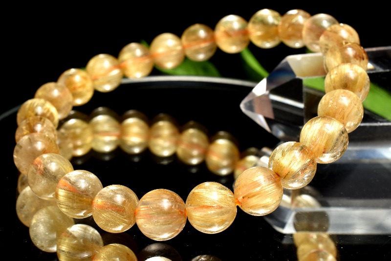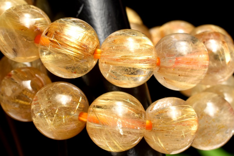 材質ゴールドタイチンルチルクォーツ 7.5mm 産地:ブラジル