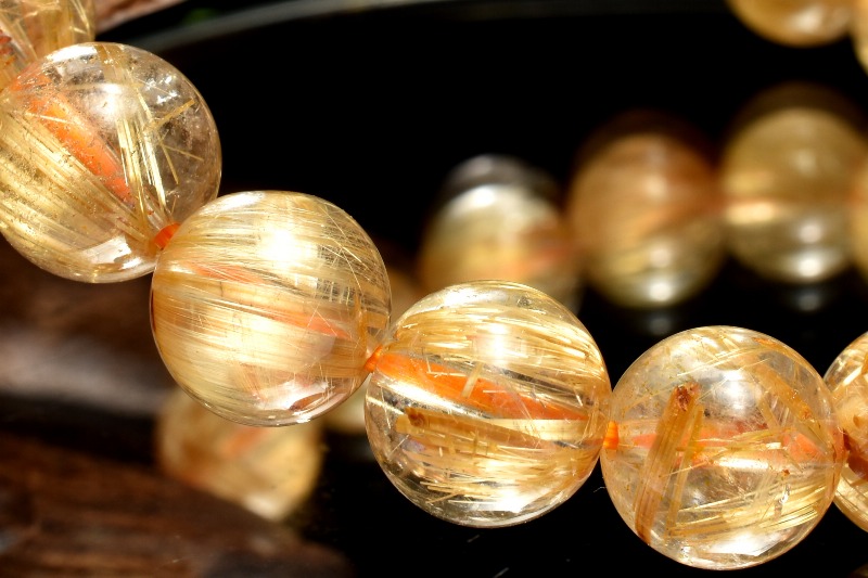 材質ゴールドタイチンルチルクォーツ 9mm 産地:ブラジル