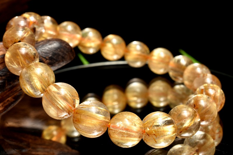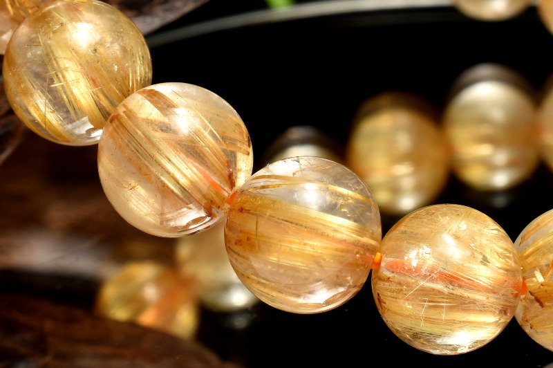 材質ゴールドタイチンルチルクォーツ 9mm 産地:ブラジル