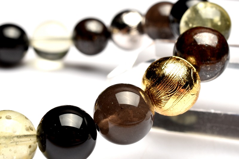 【1点物】贅沢◇宇宙のパワー MIX隕石(アルタイ隕石+黒隕石+リビアングラス+コンドライト隕石) 9.5-10mm ブレスレット _MA3762