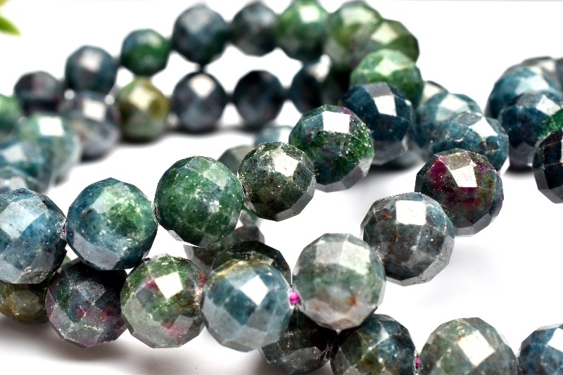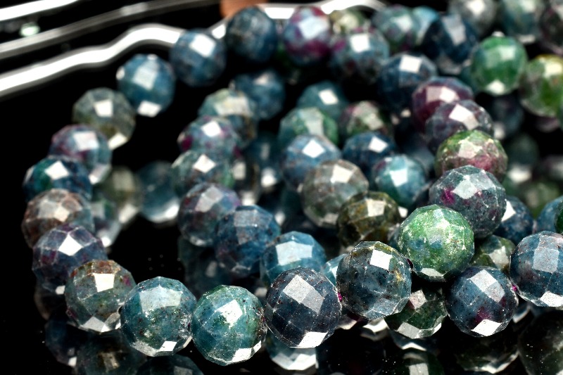 希少 ルビーサファイアフックサイトインカイヤナイト 7.5mm 64面カット ブレスレット 1個売り _BG5736-75