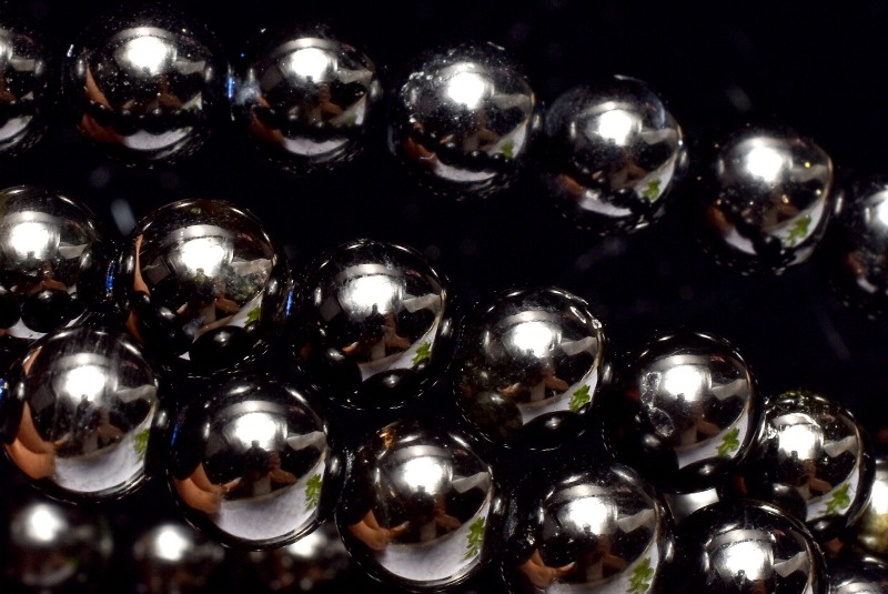 金属質感 ブラックアクアマリン(ブラックベリル) 7.5mm ブレスレット 1個売り _BG5741-75