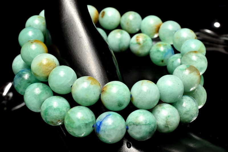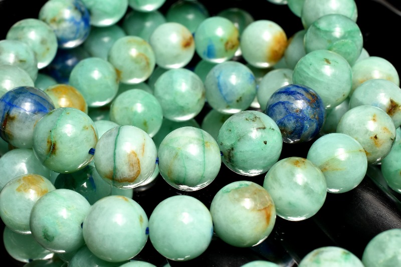 ブルーが本体の多くを占め、グリーンやブラウンなどのカラーが混ざり合って、出来ているため、丸く加工されたクリソコラは、宇宙から見た地球のような外観となっています。