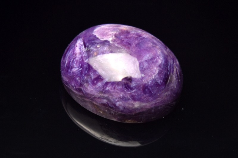 チャロアイトという名前の由来には、シベリアのチャロ川流域で発見された事とする説と、ロシア語の(Charo魅惑)から名づけられたという説がありますが、後者の方が有力であるとされています。その名の通り、この石の個性的な模様は、見る人を魅了してやみません。まさに、「魅惑の宝石」にぴったりな石です。
