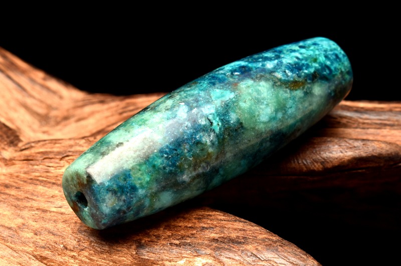 【1点物】ペルー産◇高発色 クリソコラ 39x13mm 天珠(貫通穴) チューブ ビーズ _PC3685