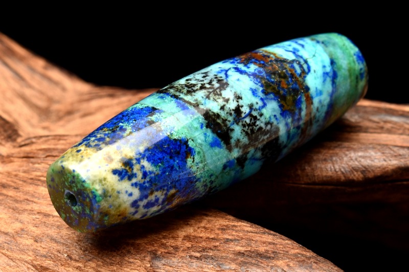 【1点物】ペルー産◇高発色 クリソコラ 39x12mm 天珠(貫通穴) チューブ ビーズ _PC3691