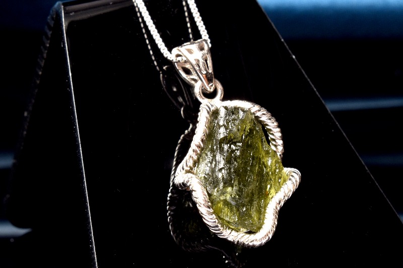 【1点物】希少AA+☆Silver925 モルダバイト 16x11mm 原石 ペンダントトップ _PC3762