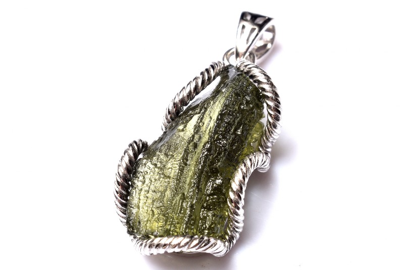 【1点物】希少AA+☆Silver925 モルダバイト 21x10mm 原石 ペンダントトップ _PC3769