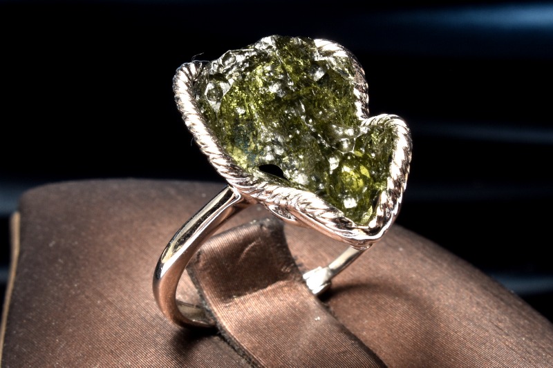 テクタイトは、遥か昔、地球に隕石が衝突した際に、その衝撃で地表の岩石が融解・飛散し、それらが冷やされてガラス質状に固まったものであるとされています。テクタイトは黒色ですが、モルダバイトは緑色、または褐色がかった透明で、ガラス光沢を放っています。