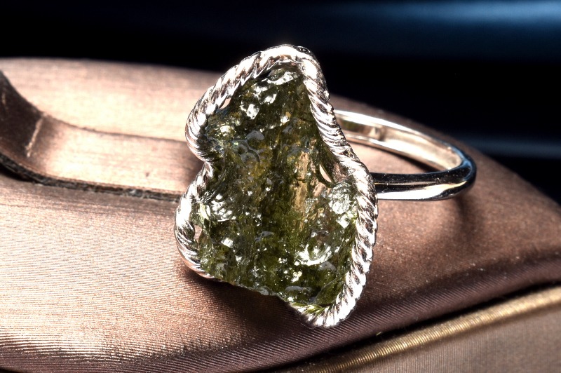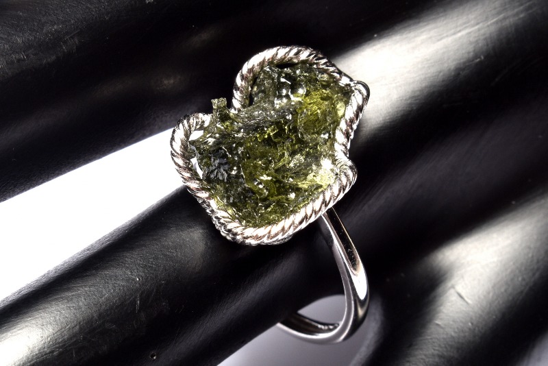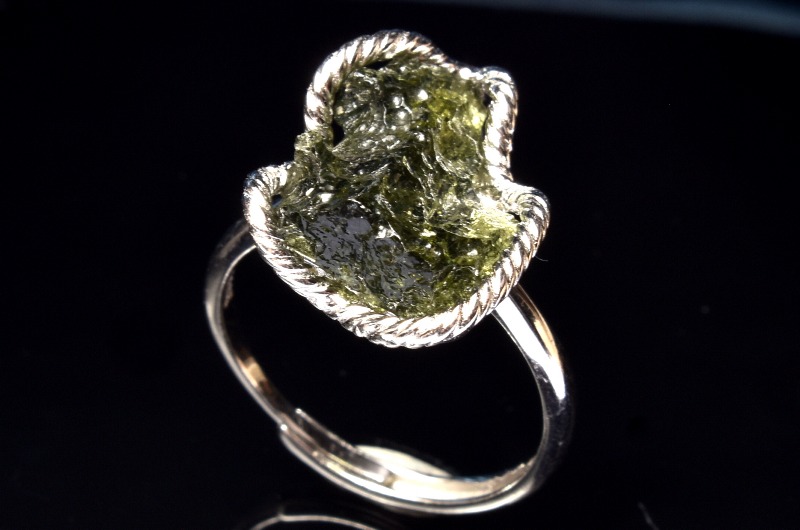 【1点物】希少AA☆Silver925 モルダバイト隕石 16x12mm 原石 指輪リング(サイズ調整可) _PC3773