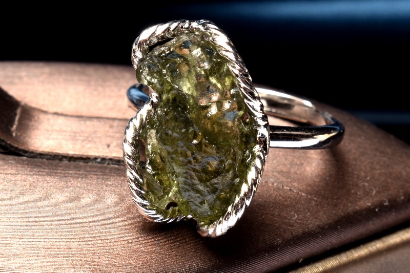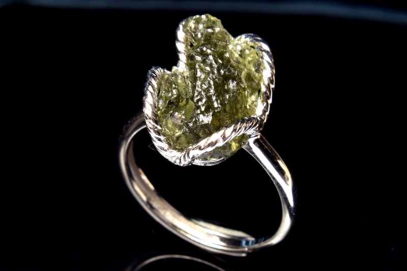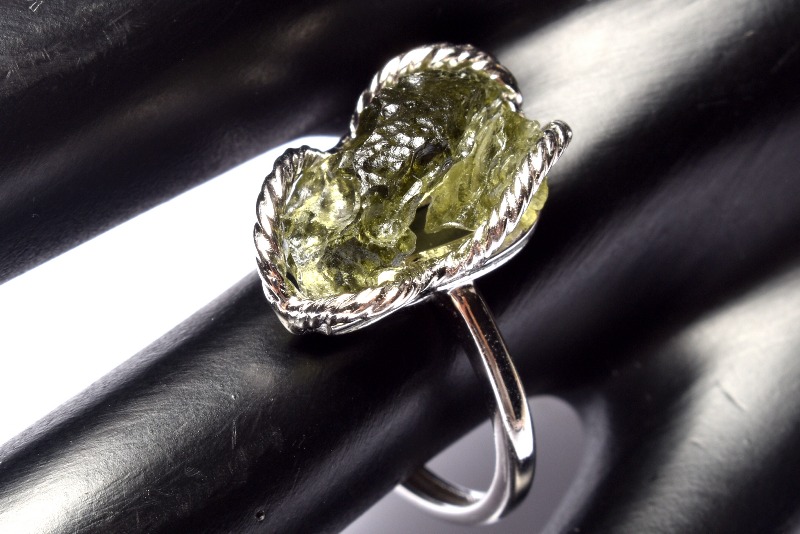 【1点物】希少AA☆Silver925 モルダバイト隕石 16x10mm 原石 指輪リング(サイズ調整可) _PC3776