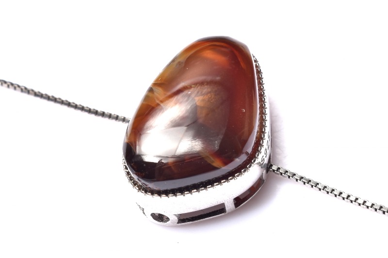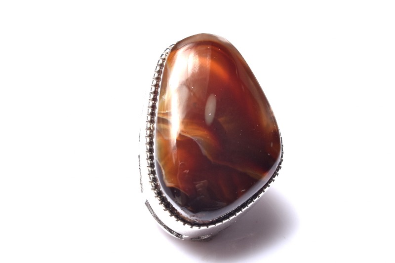 ファイアーアゲートはリモナイトなどを内包したカルセドニー(玉髄)の一種で、炎のようにゆらゆらと輝くことから、このような名前がつけられました。
