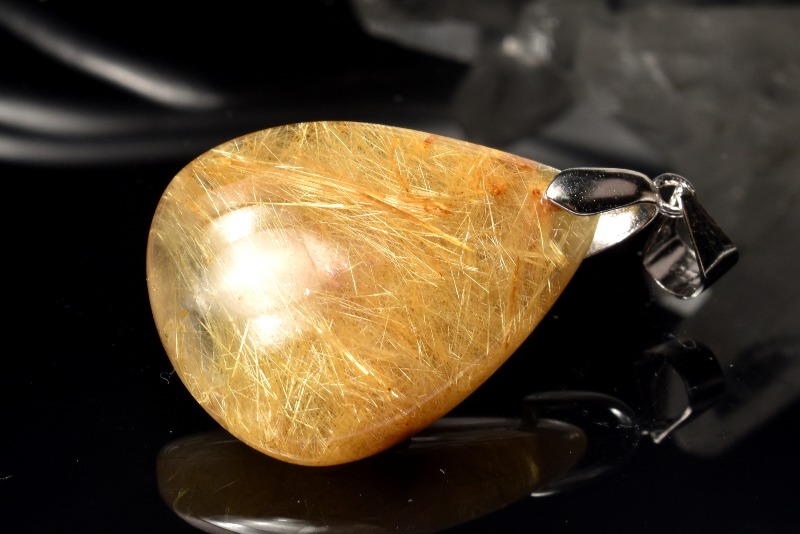 【1点物】Silver925◇濃密内包 ゴールドタイチンルチルクォーツ 25x20mm ドロップ ペンダントトップ _PC3819