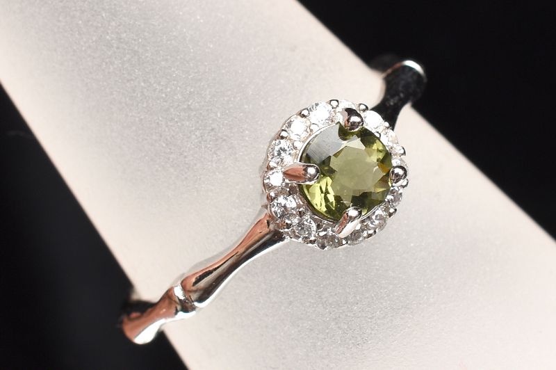 Silver925◇宝石質 モルダバイト 5mm ラウンド 指輪リング(サイズ調整可) 1個売り _PR3452
