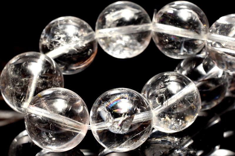 その名の通り、透明のクリスタル(水晶)の内部が虹色に輝く、たいへん美しい石です。